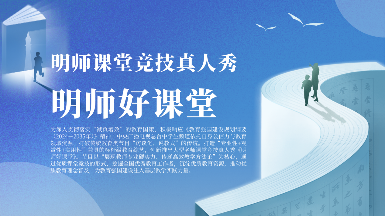 为深入贯彻落实“减负增效”的教育国策,积极响应《教育强国建设规划纲要(2024-2035年)》精神,中央新影中学生频道依托自身公信力与教育领域资源,打破传统教育类节目“访谈化、说教式”的传统。打造“专业性+观赏性+实用性”兼具的标杆级教育综艺,创新推出大型明师课堂竞技真人秀《明师好课堂》。节目以“展现教师专业硬实力、传递高效教学方法论”为核心,通过优质课堂竞技的形式,挖掘全国优秀教育工作者,沉淀优质教育资源,推动优质教育理念普及,为教育强国建设注入基层教学实践力量。