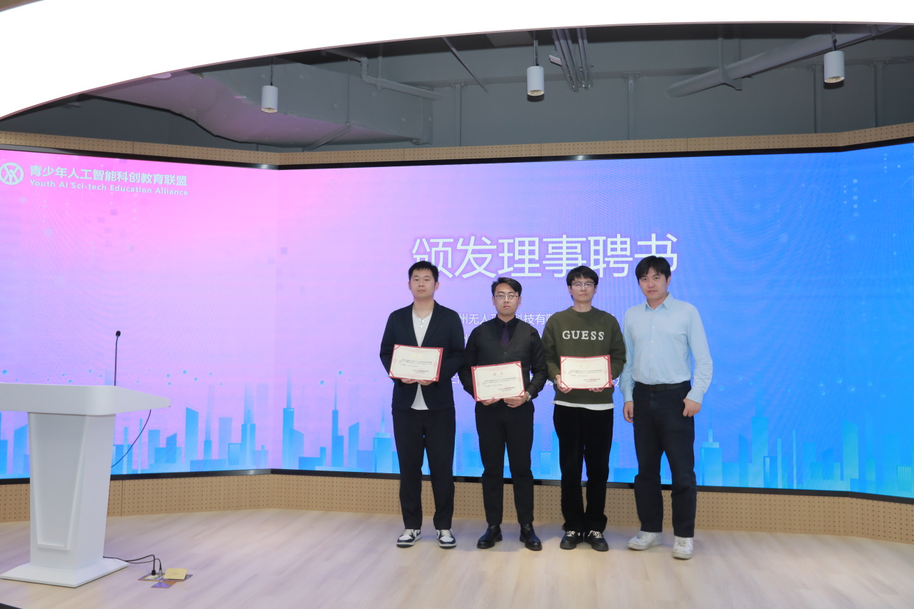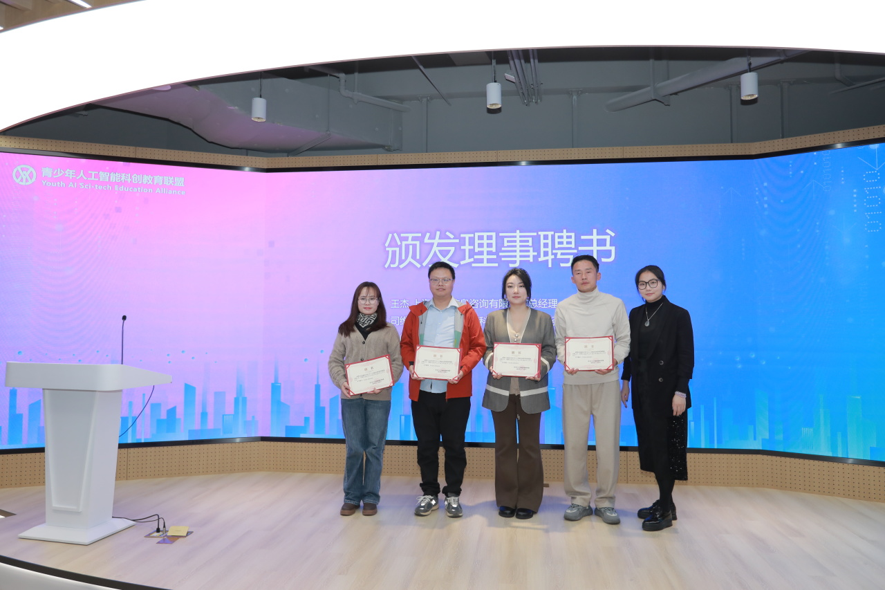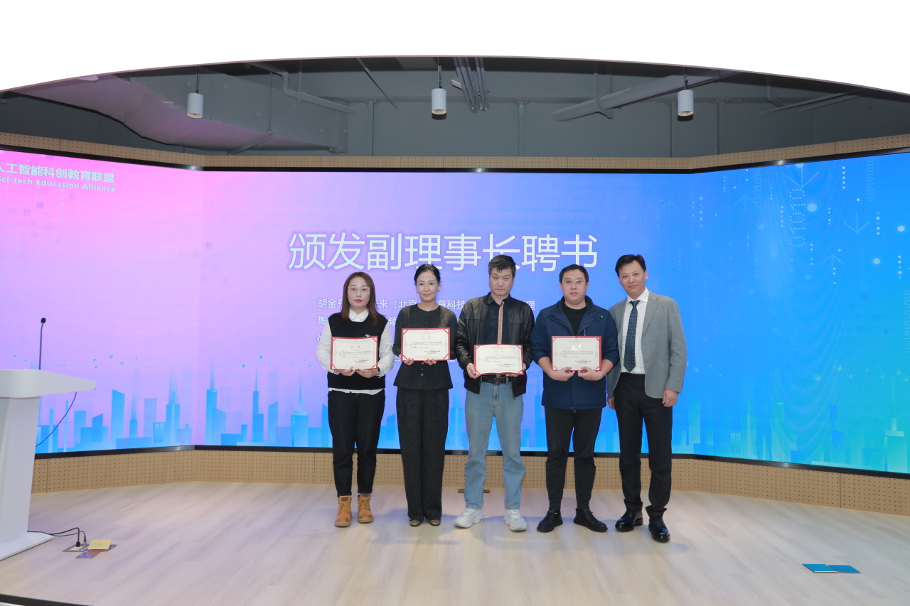 常务副理事长朱艺先生为上海寰钛教育科技有限公司总经理 王灿钰先生、深圳市创客工场科技有限公司总监 王勇先生、广东民办教育协会常务副会长 叶丽仪女士、浙江省机器人协会竞训委员会副主任 张灵先生、上海长三角智慧城区发展研究院副院长 沈建平先生、深圳市优必选科技股份有限公司赛事总监 沈儒雅先生、北京亿达投资有限公司副总经理 陈默先生、上海立爱教育科技有限公司总经理、联合创始人 苏行洲先生、上海人工智能研究院科技生态中心主任 皇甫秉京先生、飞向未来(北京)教育科技有限公司总经理 胡金亮先生、东方网教育频道副主任、主编特别助理 陶杨先生、中科正茂(浙江)文化旅游发展有限公司总经理 徐莹莹女士、上海惠都展览有限公司董事总经理 徐斯维女士颁发副理事长聘书。
