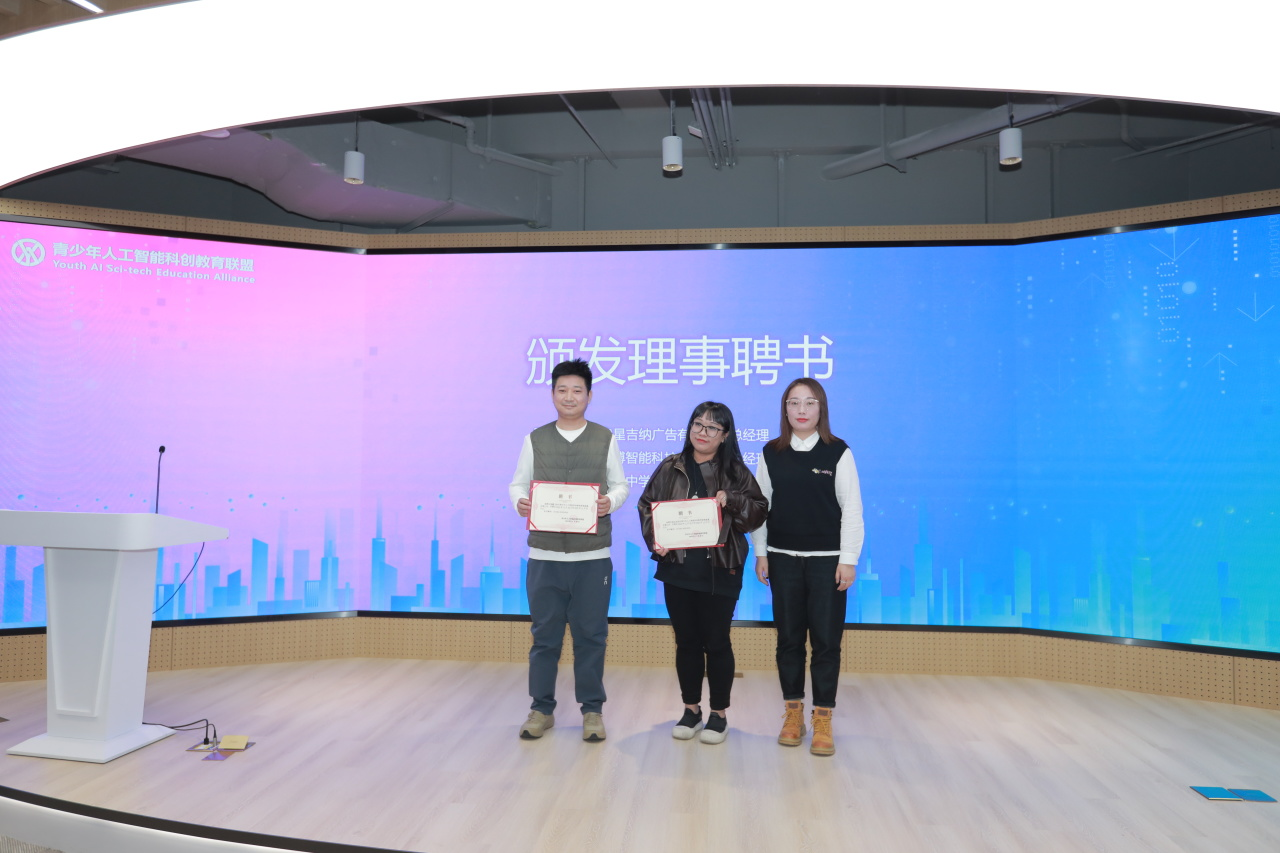 副理事长叶丽仪、苏行洲、徐莹莹分别为上海立爱教育科技有限公司产品研发、竞赛总监 陈嘉梁先生、杭州无人正飞科技有限公司总经理 华顺锋先生、常州傲博智能科技有限公司总经理 施剑钢先生、上海孟璨信息咨询有限公司总经理 王杰先生、兰州市第三十五中学科技副校长 张倍豪先生、贵州省文化传媒企业联合会体育赛事文化中心秘书长 朱峰先生、上海寰钛教育科技有限公司运营总监 张婧玮女士、石家庄乐丰教育科技有限公司总经理创始人 司维女士、北京奥星吉纳广告有限公司总经理 周鹏飞先生、中央新影中学生频道《少年的芯》栏目组主任 徐吉吉女士颁发理事聘书。